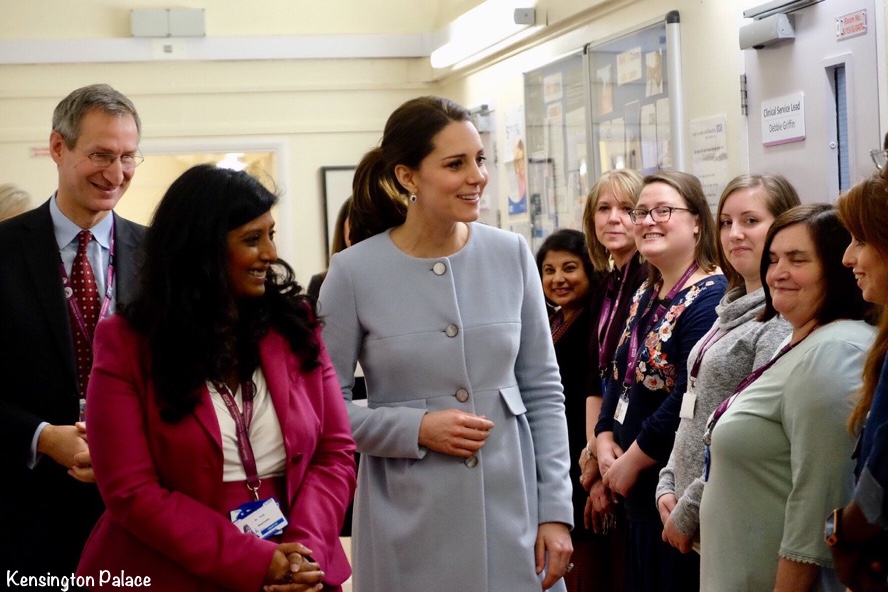 LONDRA – Kate Middleton, cappotto e tacchi: sotto la pioggia è super chic! FOTO. Non sarà certo la pioggia a contrastare l’eleganza di Kate Middleton! In occasione della sua visita al King’s College di Londra a sostegno dei bambini malati, la Duchessa è apparsa incinta e super glamour nonostante il brutto tempo. Kate ha scelto di riciclare un cappottino celeste modello “Natasha” firmato Seraphine, uno dei suoi marchi preferiti in gravidanza. Il pancione si fa sempre più evidente ma Kate non sbaglia un look e, soprattutto, non ha intenzione di farsi sopraffare dalla pioggia. Scarpe con tacco in suade blu Jimmy Choo e… ombrellino (che la Duchessa ha portato da sola senza l’aiuto di nessuno) hanno completato il look riuscitissimo nonostante il cattivo tempo!