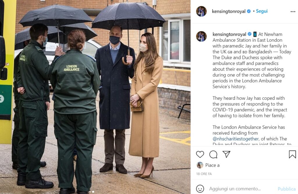 William e Kate Middleton insieme per una nuova apparizione in pubblico. I Cambridges hanno formato un fronte unito per cercare di scacciare il più possibile le voci di tensione tra William e Harry. Ieri pomeriggio Kate Middleton e Will hanno fatto visita a una stazione di ambulanze a Londra, per parlare con il personale delle sfide del lavoro durante la pandemia.