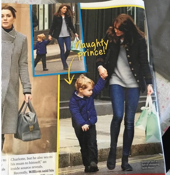 LONDRA – Kate Middleton: casual in jeans insieme a George FOTO. Dopo essere “sopravvissuto” egregiamente al primo giorno di asilo, il piccolo George accomPagna mamma Kate per un giro di shopping anche se, osservando le foto, non sembra apprezzare poi tanto. Kate, come sempre, conquista tutti anche con un casual look super glamour. Paparazzata dai fotografi del magazine “Woman’s Day Australia”, Kate Middleton appare bellissima anche in versione casual: jeans aderenti che calzano a pennello alla sua figura esile, maglione morbido bianco, mocassini neri ai piedi e giacca sportiva. Non c’è niente da fare: Kate è bellissima sempre ma quando si veste casual dà davvero il meglio di sè e siamo certi che il suo look sarà copiato ancora una volta da milioni di ragazze in tutto il mondo.