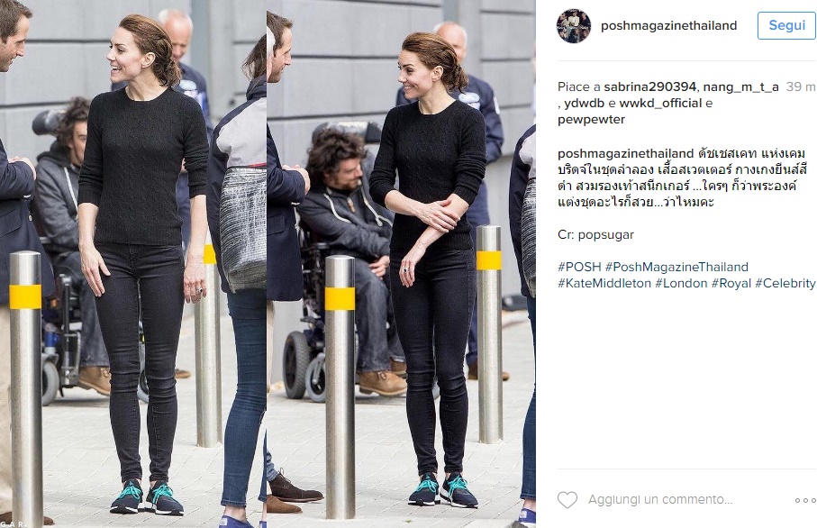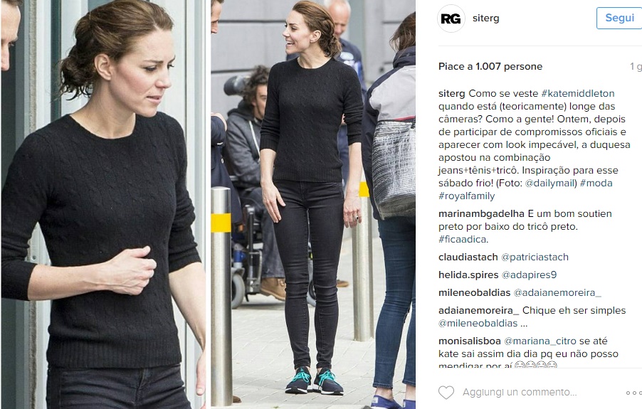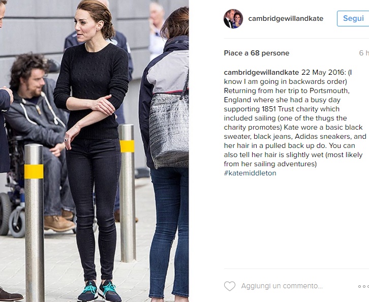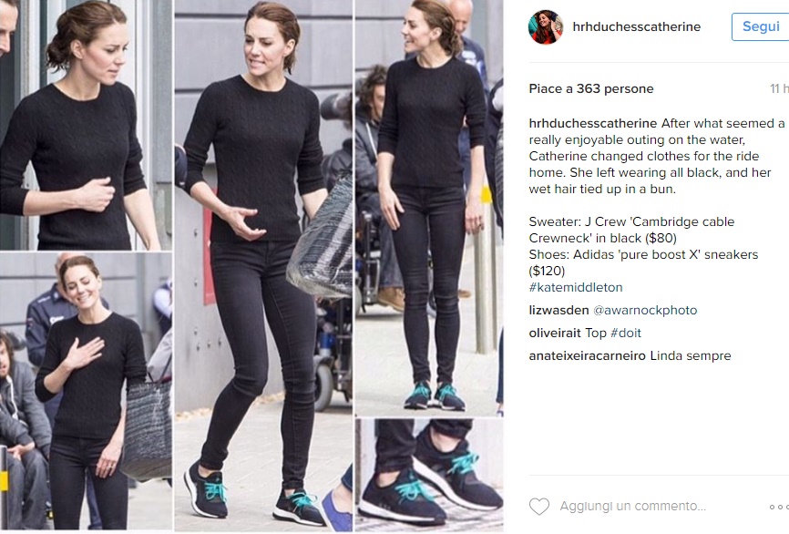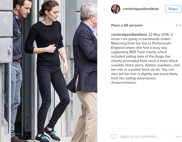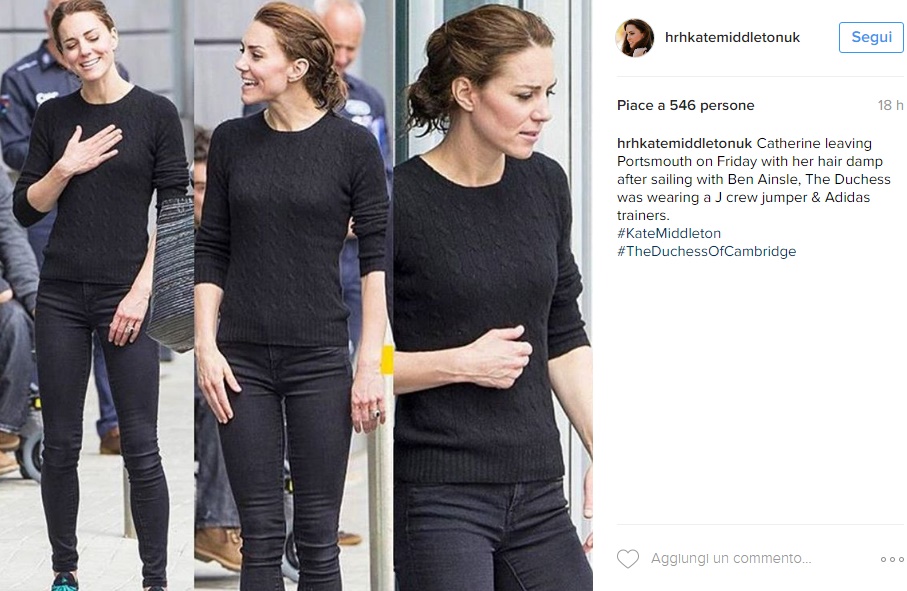 LONDRA – Kate Middleton casual: skinny aderenti e sneakers FOTO. Look total black incredibilmente casual e glamour per la Duchessa. L’ennesima dimostrazione che la nostra amata Kate Middleton appare super chic con qualsiasi cosa indossi: di ritorno dal suo viaggio a Portsmouth, dove ha avuto degli intensi giorni a supporto di alcuni eventi benefici, Kate ha scelto una mise sportiva ma a dir poco fashion: un maglioncino basico nero firmato JCrew, skinny neri aderenti e scarpe da ginnastica Adidas. Capelli raccolti e make up neutro completavano il look. Che dire, anche in un look super casual la Duchessa appare incredibilmente glamour e la sua mise ha mandato in visibilio le fan. Solo lei riesce ad indossare un look semplice total black ed apparire una vera regina. Insomma, come al solito la Duchessa non sbaglia un colpo e appare tanto naturale quanto bella. È magnetica Kate Middleton, con quella sua tipica aristocratica semplicità che l’ha fatta entrare nei cuori del popolo inglese. È Duchessa, ma non snob, è la moglie di William, ma non nobile.