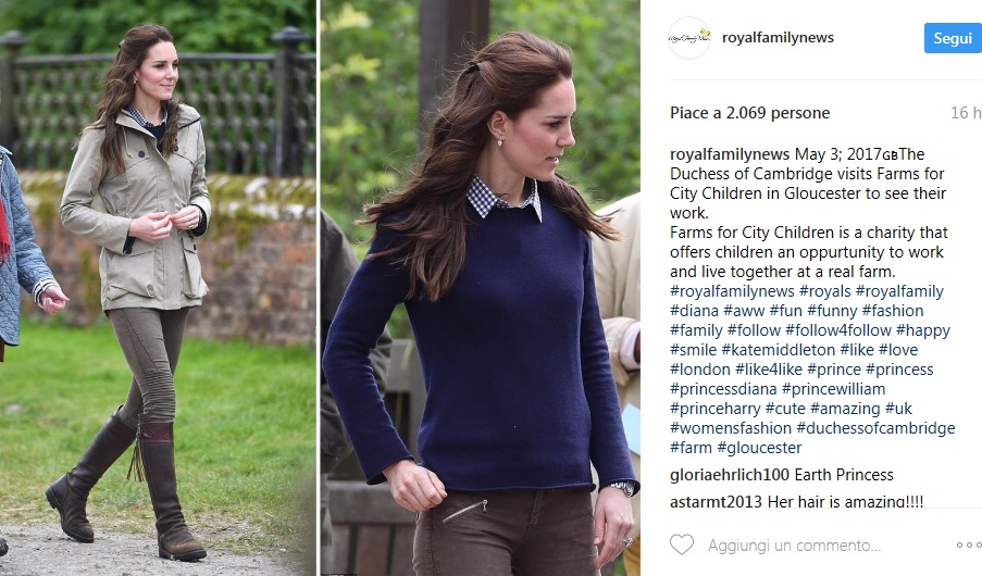 LONDRA – Kate Middleton, chic in giacca sportiva e skinny FOTO. Kate Middleton in versione casual: in occasione della visita alla fattoria didattica di Arlingham, la Duchessa ha sfoggiato un look perfetto per l’occasione. Nonostante la mise sportiva, Kate è riuscita ad apparire incredibilmente chic e glamour: skinny color verde kaki del marchio low cost Zara, giacca stile “Safari” che la Duchessa ha già sfoggiato in occasione del viaggio istituzionale in Canada nel 2016, stivali da cavallerizza (i suoi preferiti), Kate era davvero bellissima. Sotto la giacca la Duchessa ha indossato una camicia a quadri e maglioncino blu. Che dire, ancora una volta Kate ha dimostrato di saper apparire glamour e chic anche in versione sportiva, come solo una vera regina di stile sa fare.