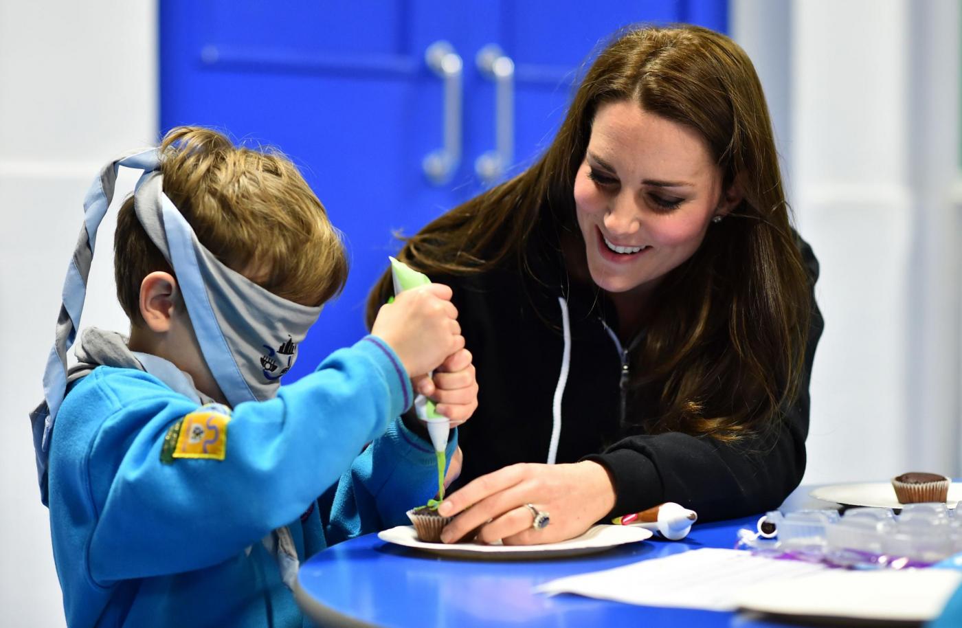 The Duchess of Cambridge helps blindfolded Fynley Gooch, aged seven, ice a cake as she promotes disability awareness when she met with children at the newly established 23rd Poplar Beaver Scout Colony in east London. PRESS ASSOCIATION Photo. Picture date: Tuesday December 16, 2014. Kate’s visit supports the Scout Association's 'Better Prepared' campaign, which aims to help communities to deliver Scouting to two hundred locations across the UK where Scouting can have the biggest impact. Photo credit should read: Ben Stansall/PA Wire