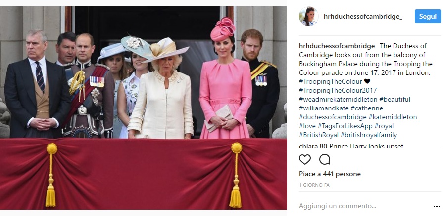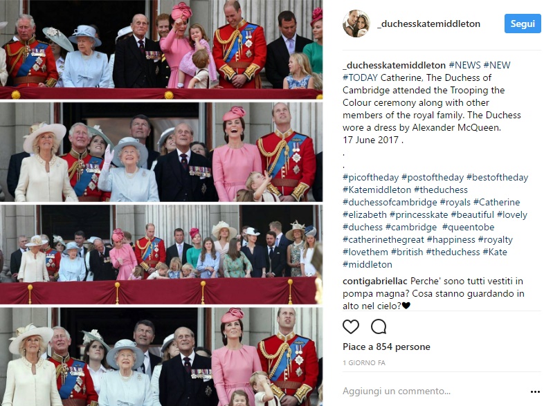 “Le principesse Beatrice ed Eugenia sono state costrette a mettersi dietro la regina Elisabetta ed erano a malapena visibili. In effetti entrambe le sorelle sembravano piuttosto infastidite, anche perché come sempre i fotografi erano concentrati su Kate Middleton che spiccava al centro del balcone con un meraviglioso abito rosa acceso Alexander McQueen. Naturalmente, Kate sapeva benissimo che ancora una volta avrebbe rubato la scena alle due sorelle principesse di York e questo ha fatto imbestialire Eugenia e Beatrice. Non è certo la prima volta che le due sorelle vengono oscurate dalla bellezza di Kate e il fatto che la regina abbia deciso di “relegarle” nelle file posteriori in occasione del Trooping the Colour non ha fatto altro che peggiorare la situazione. Ancora una volta le due principesse hanno fatto la figura delle “emarginate”. A quanto pare ogni volta che sono costrette ad apparire insieme alla Duchessa, vengono sempre messe da parte e, a questo punto, in molti si chiedono se Kate non lo faccia apposta…”.