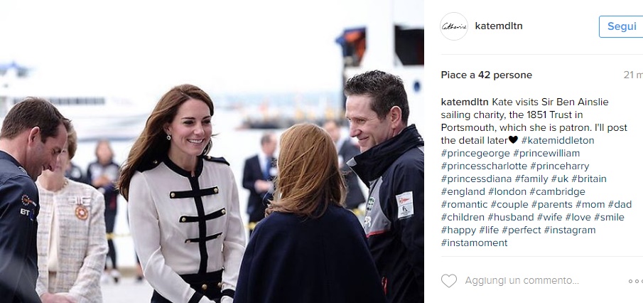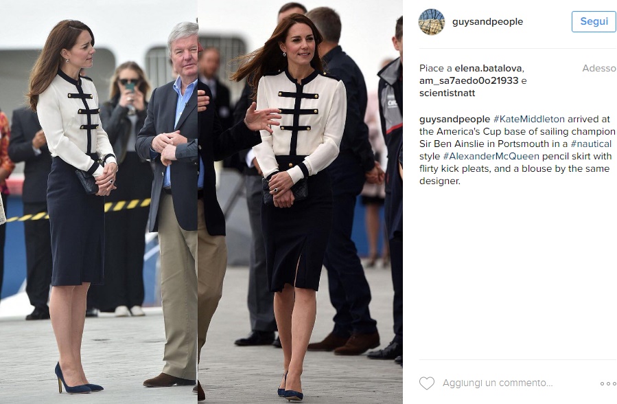 PORTSMOUTH (INGHILTERRA) – Kate Middleton, gonna con spacco Alexander McQueen FOTO. Mise dal sapore navy per la nostra amata Kate Middleton, che in occasione dell’incontro con il velista inglese Ben Ainslie a Portsmouth ha optato per un look firmato Alexander McQueen composto da gonna a matita con spacco e blusa bianca e blu. Ma l’outfit sfoggiato dalla Duchessa non è nuovo alle fan e ai fotografi. Kate, infatti, lo ha già indossato in due occasioni: nel 2011 per una visita in Birmingham e nel 2014 per fare visita al WW2 di Bletchley Park. Insomma, Kate si conferma ancora una volta -con successo- regina del riciclo.