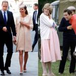 Da quando la Duchessa ha annunciato la sua terza gravidanza, a settembre scorso, spesso i suoi look sono stati messi a paragone con quelli di Lady Diana quando era incinta di William e Harry. Analizzando i vari outfit è possibile notare come molti dei look di Kate siano ispirati proprio a quelli di Lady D.