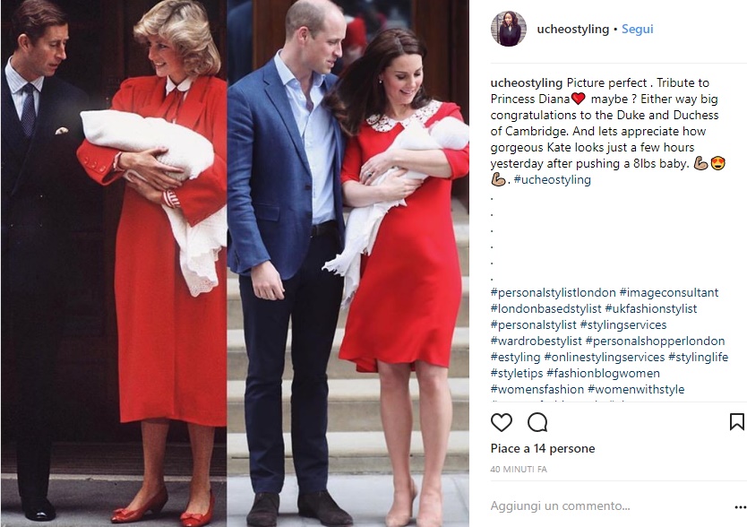 I fan della corona non hanno potuto fare a meno di notare un particolare: il look di Kate sembra un chiaro omaggio alla compianta Lady Diana che, in occasione della nascita del principe Harry nel 1984, ha sfoggiato un abito rosso con fiocco sul collo molto simile a quello scelto da Kate Middleton. I critici della corona inglesi sembrano esserne certi: ancora una volta la moglie di William ha voluto ricordare la principessa, morta prematuramente in un tragico incidente d’auto nel 1997.