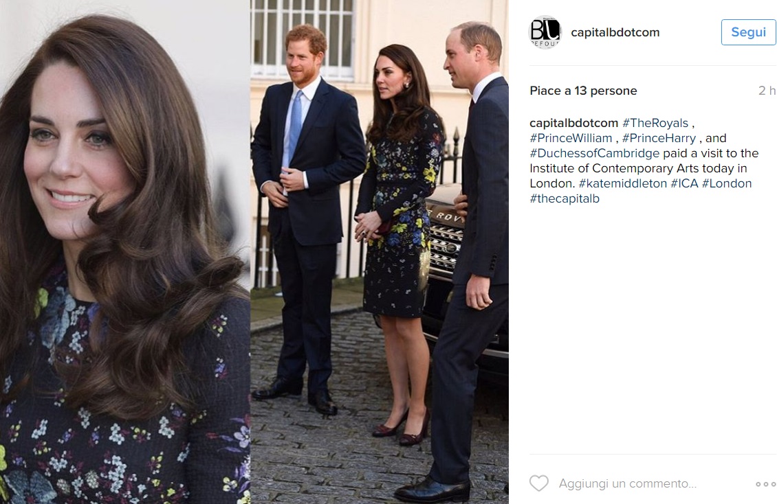 LONDRA – Kate Middleton impeccabile: tubino aderente e tacchi FOTO. Look glamour e chic per Kate Middleton che, in occasione della visita insieme al marito William e al cognato Harry all’Istituto d’arte contemporanea, ha scelto un tubino nero dal motivo floreale firmato Erdem a dir poco delizioso. Decolletè Tod’s, clutch Mulberry completavano il look elegante ma fresco ed attuale. Che dire, Kate ha letteralmente catalizzato l’attenzione dei fotografi scegliendo una mise che ha messo in risalto il suo fisico slanciato e tonico. Il tubino aderente infatti ha esaltato lo charme della Duchessa e l’orlo appena sopra il ginocchio le ha regalato freschezza e glamour.