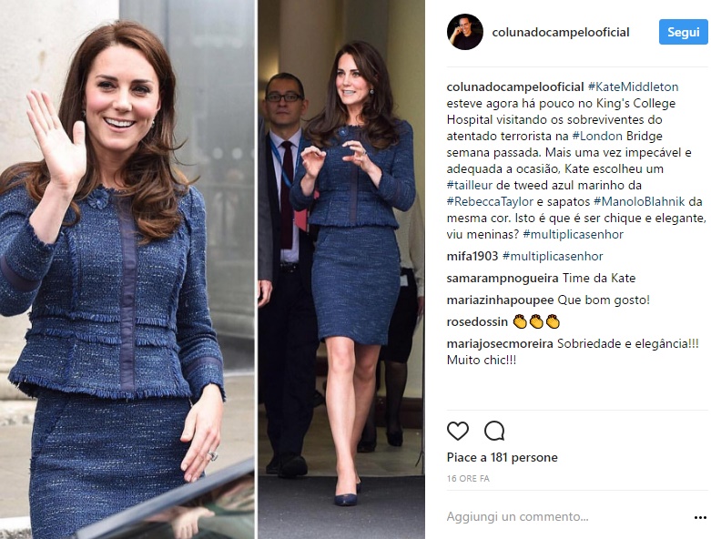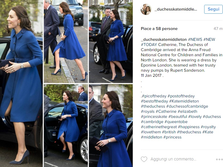 Non a caso, donne del mondo importanti quali la first lady americana Melania Trump e la premier dame francese Brigitte Macron, spesso hanno copiato Kate decidendo di sfoggiare mise sui toni dell’azzurro. È doveroso specificare però che in realtà la scelta di questa tonalità sembra avere un motivo più che “frivolo” dietro. Come ha recentemente spiegato Leatrice Eiseman, specialista del colore di Pantone, in una intervista ad Allure, sembra che l’azzurro abbia a che vedere col potere femminile: “Vestendo di azzurro una donna, le stai passando un po’ di potere”. La Eiseman ha parlato di empowement, che rappresenta la conquista della stima di sé e non solo della concessione del potere, magari da parte di un uomo. Insomma, un vero e proprio inno all’autodeterminazione. Non è un caso, spiega infine la specialista del colore, che tutte o quasi le eroine Disney siano vestite di azzurro.