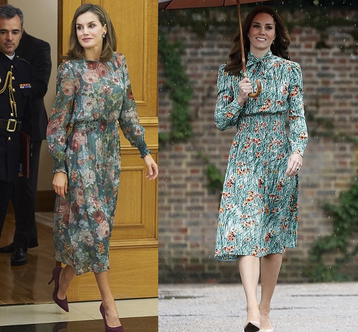 I fan della regina, però, non hanno potuto fare a meno di notare un altro particolare. Il look sfoggiato da Letizia Ortiz, infatti, assomiglia molto ad un outfit indossato qualche settimana fa da un’altra testa coronata… si tratta di Kate Middleton che, a fine agosto, ha sfoggiato un abito molto simile a quello di Letizia, con la differenza che in quell’occasione si trattava di un costosissimo abito firmato Prada.