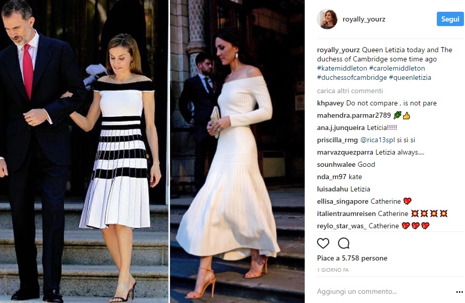 Messi a confronto, in effetti, i due abiti si assomigliano molto e sia Kate che Letizia lo indossano divinamente. Dopotutto sia Letizia Ortiz quanto Kate Middleton sono ormai considerate due icone di stile e bellezza. Ogni loro outfit non passa inosservato e anzi, è proprio il caso di dirlo, fa tendenza. Merito anche dei loro stylist, che scelgono per loro capi impeccabili in ogni occasione. Oltre alla passione per la moda, la regina e la duchessa hanno anche le origini: non sono nate nobili, essendo di estrazione borghese. Entrambe hanno mostrato una straordinaria capacità nel diventare non solo mogli perfette, ma anche icone di stile a tutti gli effetti.