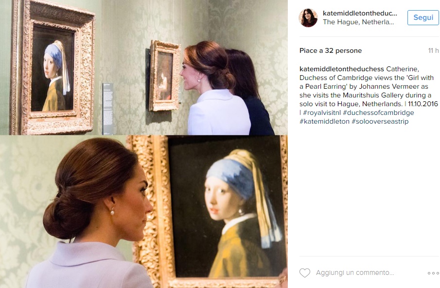 Non tutti però sanno che quegli orecchini nascondono un segreto: sono un omaggio alla Regina Elisabetta, nonno del marito William. Quegli orecchini, infatti, appartengono proprio alla regina e Kate Middleton li ha chiesti in prestito alla nonna di William per poterli indossare proprio in quella occasione speciale, pronta ad osservare quel famoso quadro di Veermer.