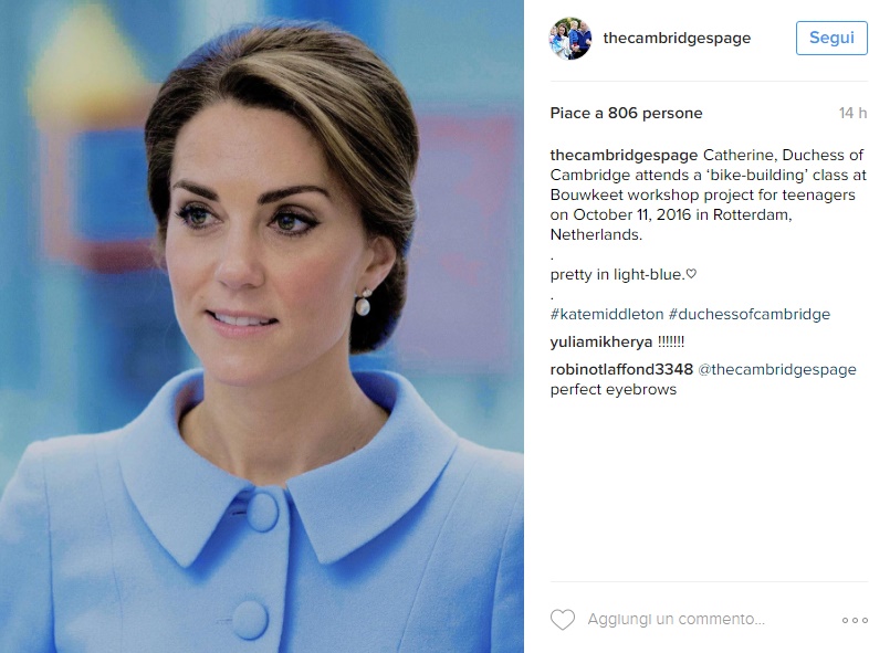 LONDRA – Kate Middleton, l’omaggio alla regina: quel dettaglio che… FOTO. Ha conquistato tutti con il suo look dal sapore vintage: ma quella mise nascondeva un segreto che è sfuggito ai più ma non agli occhi attenti degli esperti inglesi della famiglia reale. Ma andiamo con ordine. In occasione del suo primo viaggio istituzionale all’estero senza il marito William, in cui è volata in Olanda per far visita al re Willem-Alexander, la Duchessa ha scelto un tubino dal sapore vintage color azzurro chiaro, firmato Catherine Walker. Colletto alla collegiale, cinturina in vita e peplo appena accennato, Kate ha proposto un look molto simile a quelli amati dalla inimitabile icona di moda Jackie Kennedy. Punto di forza della mise, però, sono stati gli orecchini: delle deliziose perle che sono stati evidenziati in una bellissima foto in cui la Duchessa era intenta ad ammirare il famoso quadro “La ragazza con l’orecchino di perla” di Veermer.