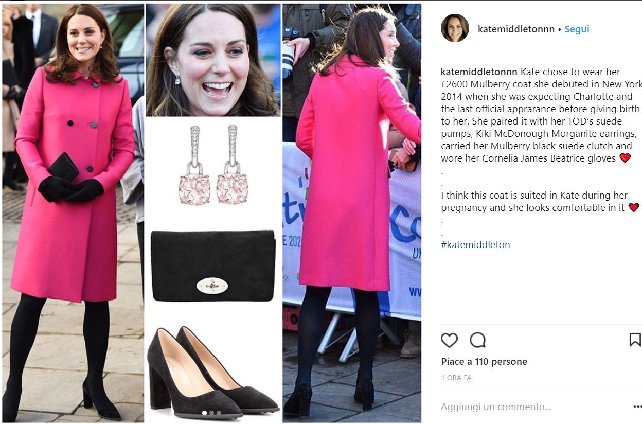 La Duchessa ha abbinato accessori neri: clutch Mulberry, scarpe Tod’s con tacco comodo, guantini in lana merino firmati Beatrice e calze coprenti. Che dire, un look semplice ma incredibilmente chic che le fan non vedono l’ora di copiare. L’outfit, infatti, non è dedicato solo alle premaman ma è adatto davvero alle donne di tutte le età.