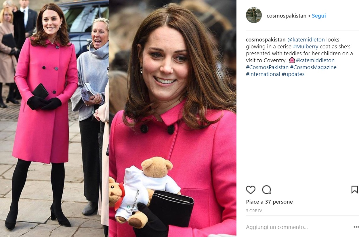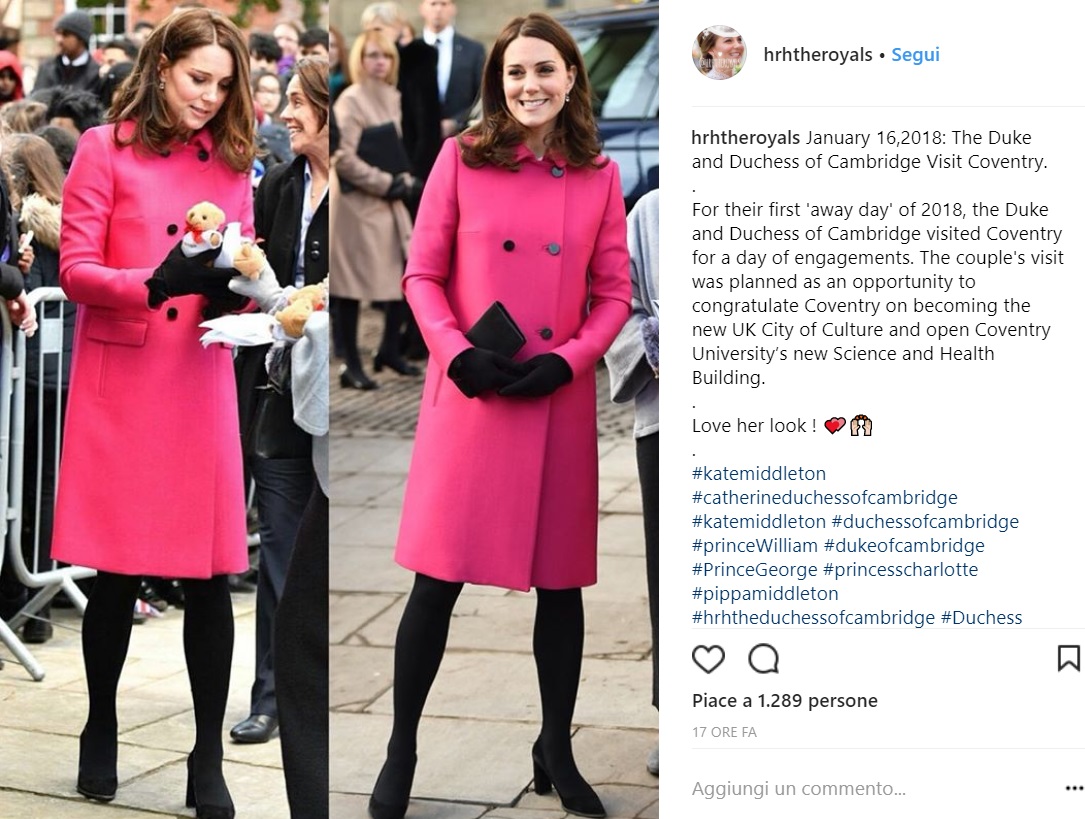 LONDRA – Kate Middleton, look fucsia e nero: Duchessa super chic! FOTO. Kate Middleton ricicla il cappotto fucsia e ancora una volta dimostra di essere lei e solo lei la regina di classe ed eleganza. Il Duca e la Duchessa hanno fatto visita alla cattedrale di Coventry e, per l’occasione, Kate ha sfoggiato un cappotto fucsia Mulberry riciclato abbinato a dettagli neri. Un look incredibilmente semplice e super chic che ha fatto sognare le fan.