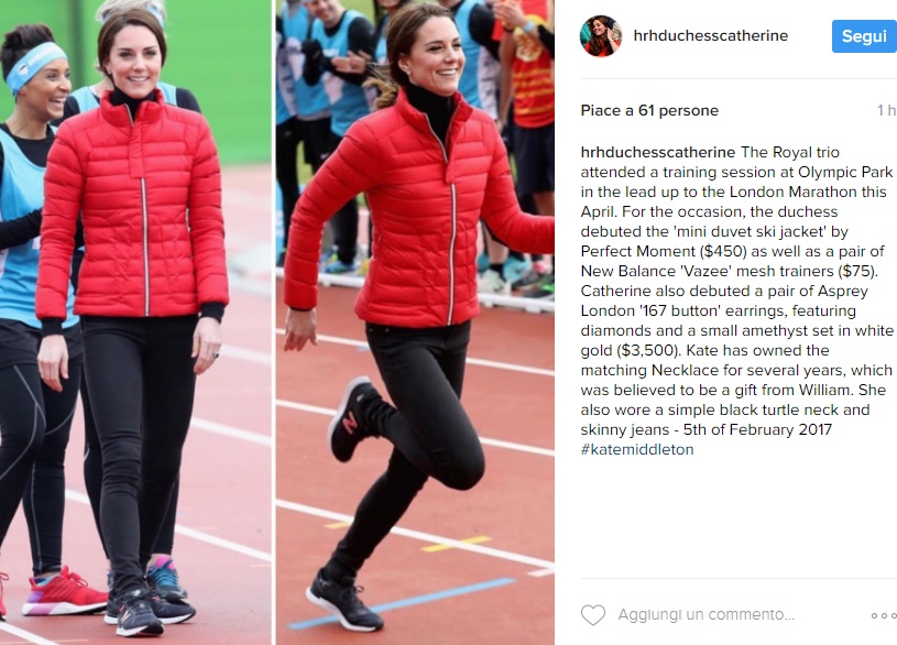 LONDRA – Kate Middleton look sportivo: bella ma… magrissima FOTO. Jeans skinny aderentissimi, piumino firmato Perfect Moment, New Balance ai piedi e maglioncino a collo alto: è bellissima Kate Middleton anche in versione sporty chic. La Duchessa ha partecipato ad una gara di corsa insieme al marito William e al cognato Harry al Queen Elizabeth Olympic Park di Londra a sostegno di Heads Together, associazione benefica impegnata nell’aiuto dei bambini con problemi mentali.