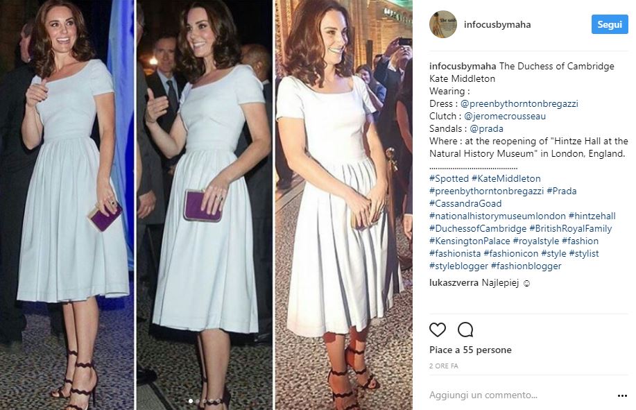 LONDRA – Kate Middleton incanta in total white. La duchessa di Cambridge ha indossato un delizioso abito bianco Preen by Thornton Bregazzi, abbinato a sandali con tacco firmati Prada per una visita al Museo di storia naturale di Londra. Un outfit impeccabile, semplice ed elegante allo stesso tempo. Tocco chic: le scarpe, oltremodo sensuali. Siamo ben lontani dal look celebrativo e formale sfoggiato per la cena a Buckingham Palace, organizzata in onore dei reali spagnoli. Anzi, forse gli stylist della moglie di William hanno optato per un abito in contrasto con quello Marchesa color rosa della cena, piuttosto elaborato.