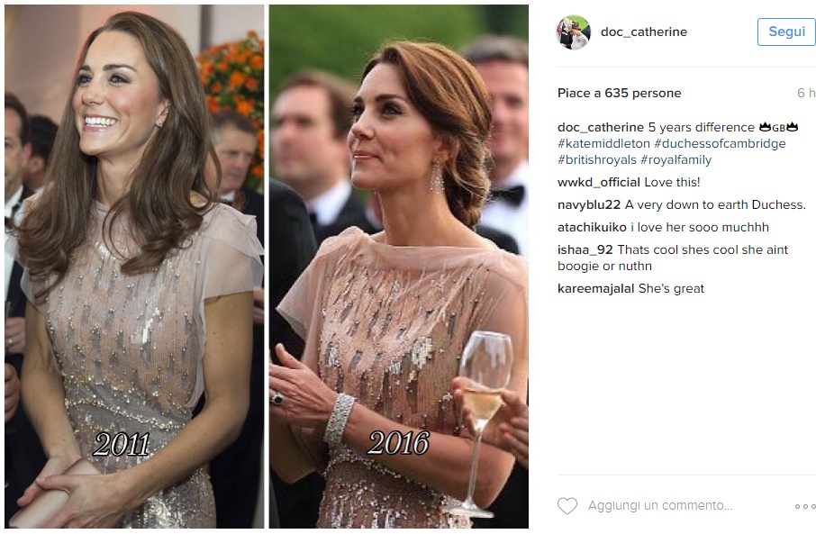 Per quanto riguarda i suoi look, Kate predilige decisamente gli abitini da cocktail corti fino al ginocchio, che slanciano la figura (già molto esile) e rendono giustizia alle sue belle gambe toniche e sode. Ma in occasione di eventi serali importanti, Kate non ha disdegnato gli abiti lunghi, dimostrando di riuscire ad apparire incredibilmente glamour anche in questa ultima versione. Alcuni abiti lunghi, in particolare, sono davvero divini ed hanno lasciato un segno tra i look della Duchessa. Primo fra tutti, proprio questo abito Jenny Packham che ha fatto scalpore nel 2011, quando Kate lo ha indossato per la prima volta, e ha fatto scalpore anche adesso, a 5 anni di distanza. Che dire, Kate non sbaglia un colpo.