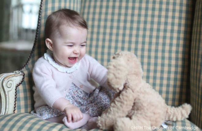 In uno dei due scatti la piccola di casa di Windsor è rigorosamente vestita di rosa e fiorellini. Nell’altro ride mentre gioca con un cagnolino di peluche. Il duca e la duchessa di Cambridge sono molto attenti alla privacy dei loro bambini, di cui vengono pubblicate solo ed esclusivamente foto scattate da membri della famiglia oppure dai fotografi ufficiali e cari ai reali britannici come Mario Testino, altrimenti trovare foto è praticamente impossibile.