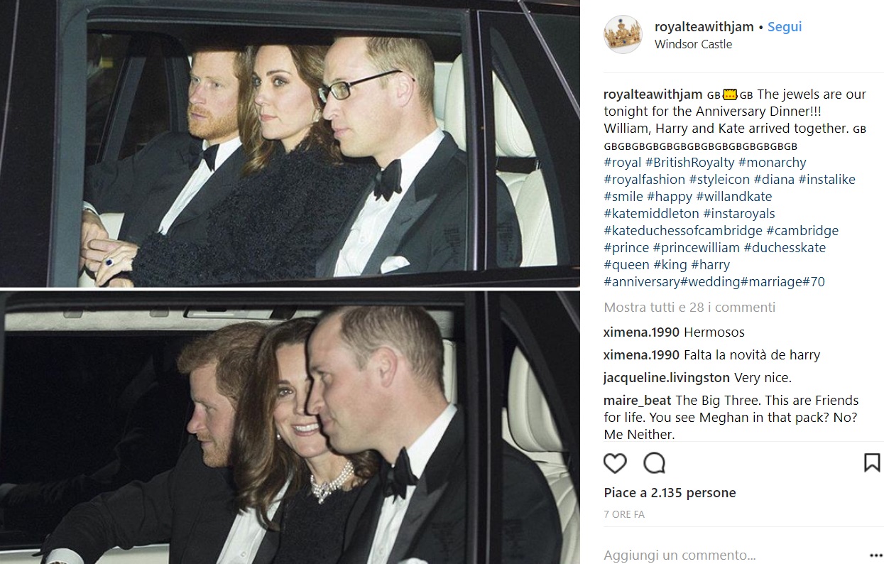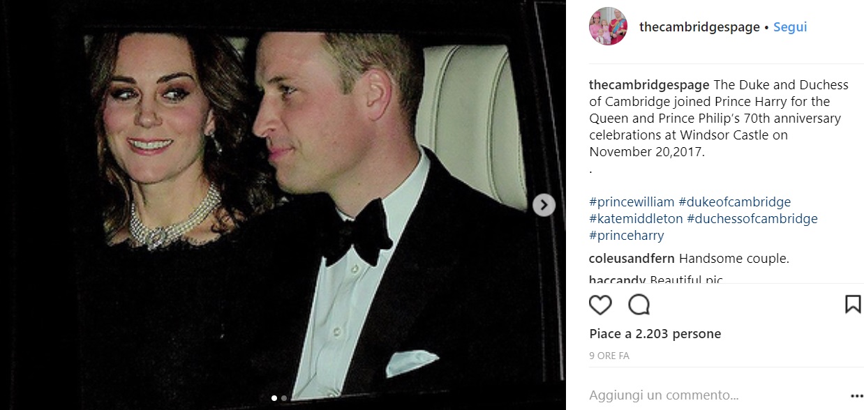 LONDRA – Kate Middleton, omaggio a Diana criticato: “Strategia”. Degli scatti rubati, un sorriso smagliante e… quel dettaglio che sta letteralmente dividendo l’opinione inglese. Kate Middleton era bellissima ieri sera. Paparazzata in macchina insieme al marito William e a Harry, la Duchessa è stata vista con un sorriso a trentadue denti. L’occasione era speciale: i festeggiamenti per il 70esimo anno di matrimonio tra la regina Elisabetta, 91 anni e il principe Filippo, 96. Una cena esclusiva a cui hanno partecipato solo 100 invitati. Tra questi, naturalmente, c’erano William, Harry e Kate Middleton. Assente, invece, la fidanzata di Hrry, Meghan. Un particolare della Duchessa però non è passato inosservato agli occhi attenti del popolo inglese: Kate, infatti, ha indossato un gioiello a dir poco speciale.