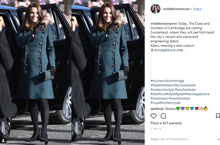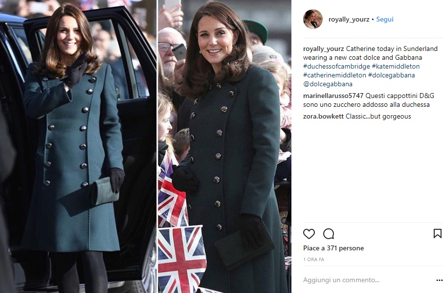 Infine ieri 21 febbraio, in occasione della visita in Sunderland per l’apertura di un nuovo centro d’arte ricavato da una vecchia stazione dei pompieri in disuso, Kate ha indossato un delizioso cappottino verde petrolio in stile militare firmato Dolce & Gabbana.