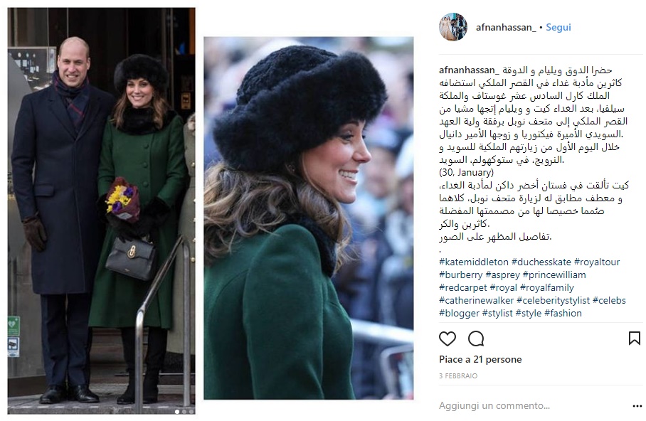 A gennaio scorso, in occasione del suo tour istituzionale in Norvegia e Svezia, Kate ha scelto di indossare il verde ben due volte: per l’incontro con i reali di Svezia, infatti, ha scelto un elegante midi dress e un cappottino, entrambi firmati Catherine Walker ed entrambi verde bosco.