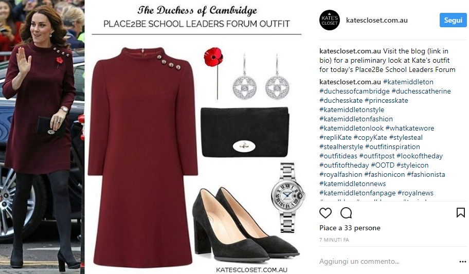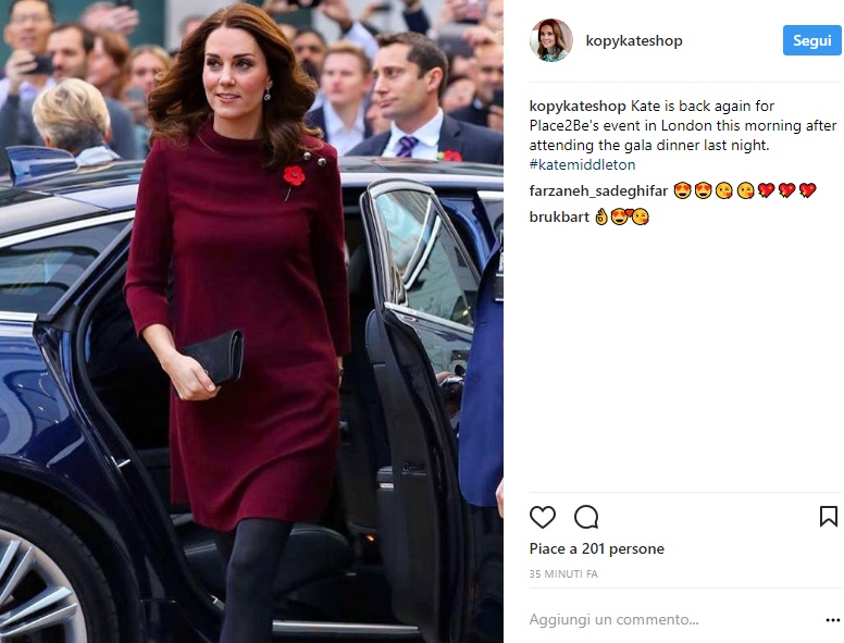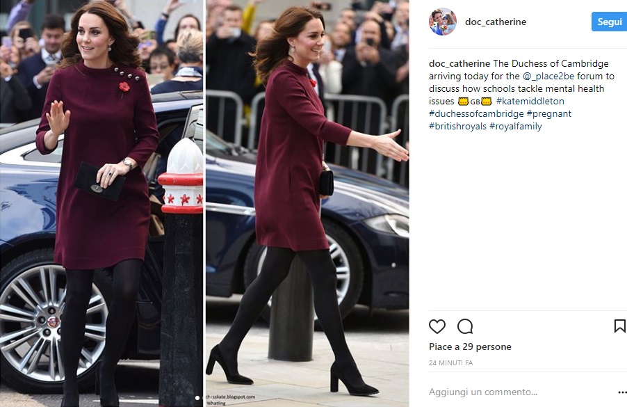 In questo caso però ha scelto un abbigliamento semplice e chic e il vestitino, pur essendo corto, non rende la mise volgare perché Kate l’ha sapientemente abbinato a calze e scarpe nere che rendono il look elegante e sobrio.