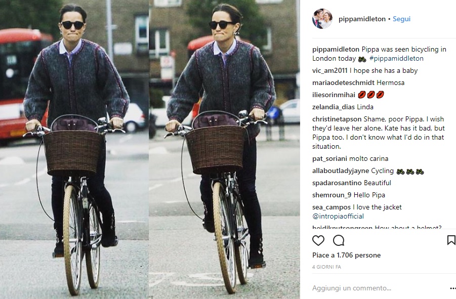 LONDRA – Kate Middleton, sorella Pippa casual chic: cappotto vintage FOTO. La sorella della Duchessa è stata pizzicata in bicicletta per le vie di Londra. Pippa ha sfoggiato un look casual chic a dir poco glamour ma a non passare inosservato è stato senza dubbio il cappottino-giacca: si tratta di un modello in lana cotta, grigio con profili rosso bordeaux. Il cappotto è firmato Intropia e sul sito del marchio è acquistabile al costo di 268 sterline, un prezzo piuttosto contenuto visto che stiamo parlando di un capospalla. Ci piace tantissimo lo stile vintage che richiama un po’ gli anni ’90, vero must di stagione! Jeans neri skinny e stivaletti bassi Stuart Weitzman, Pippa è apparsa super glamour con un abbigliamento casual chic.