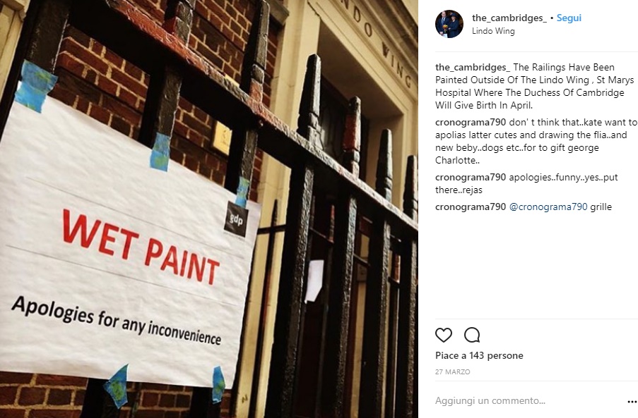 Sui cartelli compaiono anche le date relative alla restrizione, che individuano quindi l’arco di tempo entro il quale ci si aspetta che Kate dia alla luce il nuovo arrivato, tra il 9 (oggi) e il 30 Aprile.