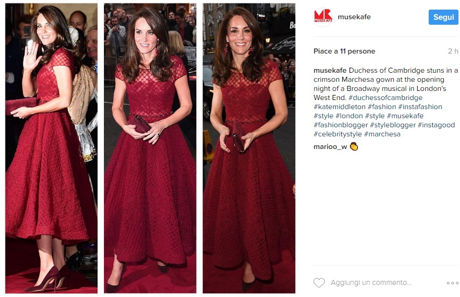LONDRA – Kate Middleton, trasparenze e pizzo rosso ma quel particolare… FOTO. Look incredibile quello scelto da Kate Middleton in occasione del Gala a Londra per la prima di 2nd Street al Theatre Royal Drury Lane, uno dei più grandi show di Broadway. La Duchessa ha sfoggiato un abito da favola firmato Marchesa che ha letteralmente catalizzato l’attenzione di fotografi e pubblico: un vestito rosso fuoco con gonna a ruota in tulle e corpetto formato da pizzo e trasparente incredibilmente sensuale. Scarpe in suade burgundy Gianvito Rossi, clutch Mulberry ton sur ton e divertenti orecchini “pon pon” completavano la mise.