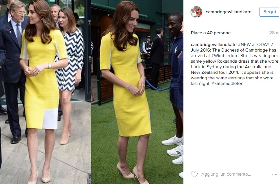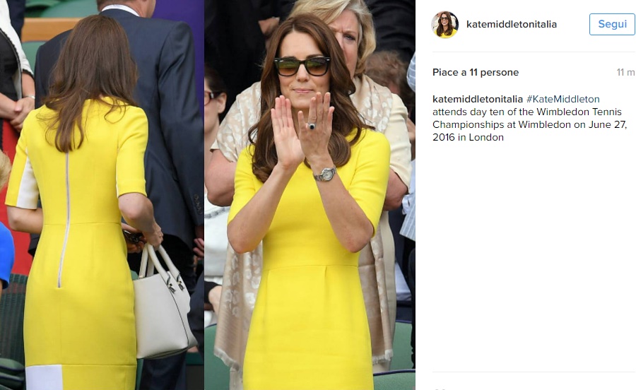 LONDRA – Kate Middleton, tubino giallo glamour a Wimbledon FOTO. Finalmente la sugli spalti di Wimbledon! È da quando ha inaugurato la nuova edizione del prestigioso torneo di tennis che attendevamo questo momento: Kate Middleton si è finalmente palesata. E, come sempre, non ha deluso le aspettative. La Duchessa ha sfoggiato un abitino delizioso e glamour più corto del solito, giallo e bianco e dalle linee moderne e chic. Il tubino è firmato Roksanda Ilincic e infatti ricorda molto un’altro abito della stessa Maison indossato dalla Duchessa qualche settimana fa. Che dire, a noi piace tantissimo. Negli ultimi tempi Kate sta decisamente sorprendendo i fan perché sta scegliendo degli abiti dalle linee più moderne rispetto ai vestitini da cocktail ed eleganti a cui ci ha abituati negli ultimi anni. Basti pensare al meraviglioso vestito bianco indossato solo ieri, con tanto di sandalo con tacco vertiginoso.