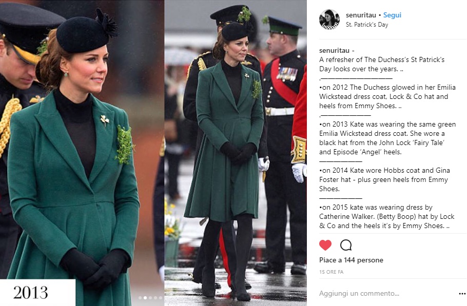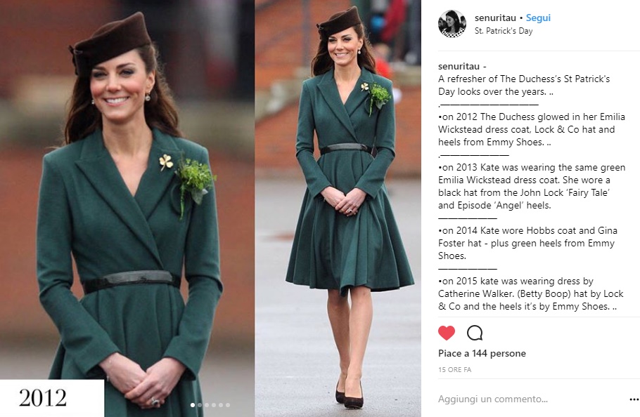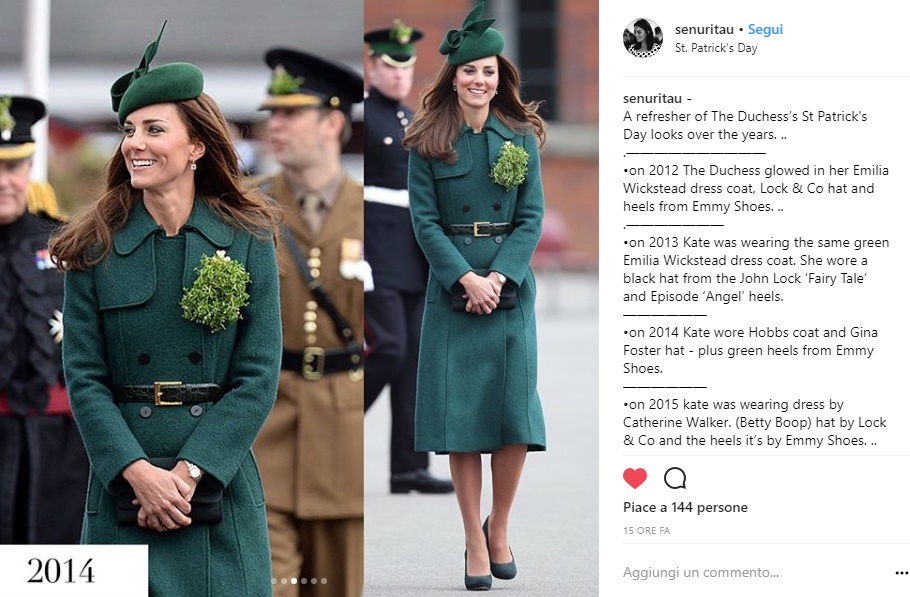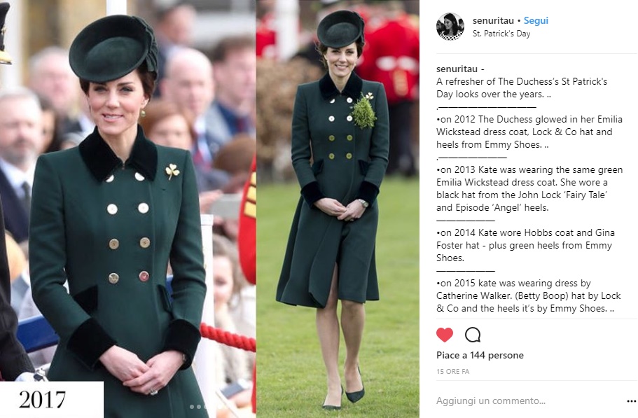 Non è certo la prima volta però che Kate sceglie il verde per festeggiare San Patrizio. Come vuole la tradizione, infatti, il verde è il colore simbolo di questo giorno e ogni volta che Kate Middleton ha partecipato ai festeggiamenti di San Patrizio ha scelto proprio il colore verde.
