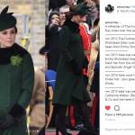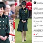 Nel 2013, incinta del piccolo George, la Duchessa ha riciclato lo stesso cappotto verde dell’anno prima, indossandolo però con scarpe, calze, guanti e maglia a collo alto tutto di colore nero. Anche il cappellino, firmato John Lock, era di colore nero.