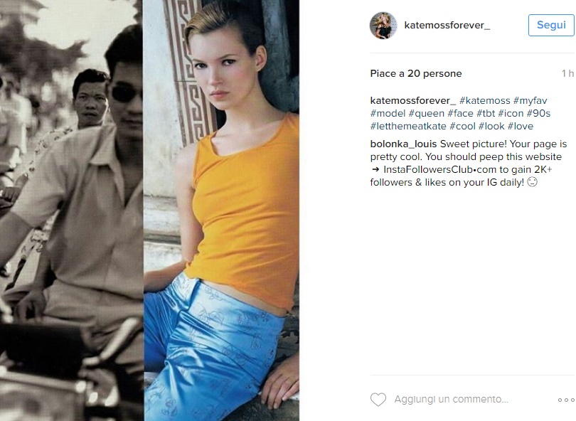 Classe ’74, Kate Moss oltre che come modella è universalmente riconosciuta anche come icona di moda. Il suo stile le ha fatto ottenere numerosi riconoscimenti, fra cui quello del “Consiglio degli stilisti d’America” di essere inserita nella lista delle donne meglio vestite nel mondo. Negli anni ’90 e primi 2000 era considerata la modella più richiesta, influente e bella del mondo. È passata alla storia la campagna pubblicitaria del 1995 per il profumo Obsession di Calvin Klein, in cui la Moss appariva seminuda e che suscitò anche numerose polemiche. Furono insinuate persino accuse di pedofilia, ed il dipartimento di giustizia, su ordine di Bill Clinton, allora presidente, decise di avviare una inchiesta in merito che portò al ritiro della campagna dopo appena tre settimane.