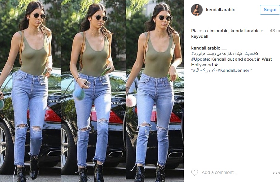 Già qualche settimana fa per le strade di Soho, a New York, insieme alle care amiche Gigi Hadid e Hailey Baldwin, la sorellastra di Kim Kardashian è stata paparazzata con un lookche ha fatto, come al solito, scalpore: jeans Re/Done, borsa Givenchy e… top nero a dir poco aderente e… trasparente. Inevitabile che i fotografi non cogliessero la ghiotta occasione di paparazzare Kendall Jenner.