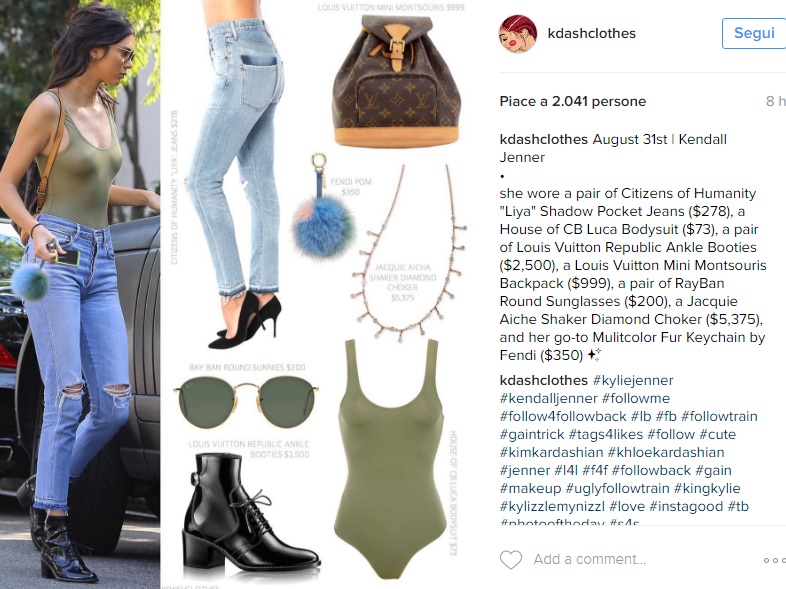Dopotutto, Kendall è una delle it girl e icone di moda più in voga del momento oltre che una delle modelle più richieste dagli stilisti delle case di moda più importanti. Ma quanto guadagna una top model come lei? A rivelarlo a ‘CR Fashion Book’ è Frank Spadafora, ex direttore di casting, fondatore e ceo di ‘D’Marie Archive’. Siete pronti? Perché si parla di cifre da capogiro che arrivano fino ai 300mila dollari. Il gioco è sempre lo stesso: si contatta una modella del calibro di Kendall Jenner, si invia il vestito o il prodotto che lei deve mostrare su Instagram e si paga per tale servizio. Una nuova forma di pubblicità che le fashion blogger conoscono benissimo, al punto che è diventata fonte di sostentamento per molte di loro.