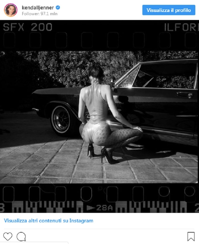 Le labbra sono nude e il volto ha tanto mascara. Kenny non si è fermata qui ed ha voluto “donare” ai suoi follower uno scatto del suo lato B. Insomma davvero un servizio fotografico sofisticato che mostra allo stesso tempo il lato dominatrice e sofisticato della sorellastra di Kim Kardashian.