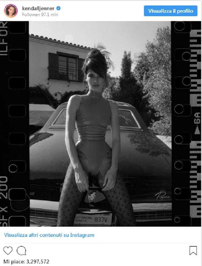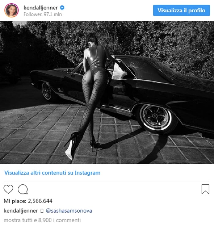 La modella più pagata al mondo ha posato per Sasha Samsonova, la fotografa preferita dal clan Kardashian-Jennere. Le foto sono finite sul suo account Instagram. A dare un tocco di perfezione al look scelto da Kendall ci sono delle pumps nere di Jimmy Choo ai piedi. I capelli sono invece raccolti in un updo con una lunga frangia sul volto.
