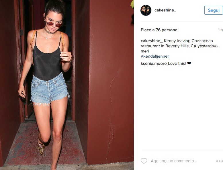 LOS ANGELES – Kendall Jenner magrissima: shorts e canotta FOTO. Kendall Jenner ha un fisico al top e, se ogni tanto ce lo dimenticassimo, ci pensa la modella stessa ogni giorno a ricordarcelo. La sorellastra di Kim Kardashian è stata paparazzata all’uscita di un ristorante a Beverly Hills, in California, e come al solito ha catalizzato l’attenzione dei fotografi e del pubblico per via del suo look a dir poco audace: canotta nera in seta super scollata e shorts in jeans cortissimi che mettevano in risalto le gambe toniche e slanciate della modella, Kendall Jenner è apparsa come al solito incredibilmente glamour.