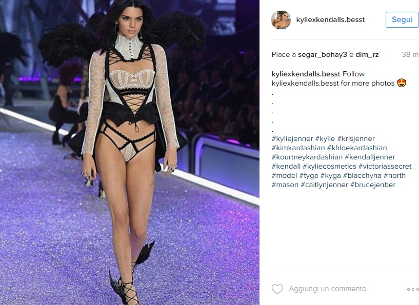 Kendall Jenner ha sfilato per la seconda volta come Angelo per il famoso marchio di lingerie e anche quest’anno ha dimostrato di essere una super top-model, degna erede degli Angeli “veterani” più famosi al mondo. Il suo fisico statuario non è certo passato inosservato.