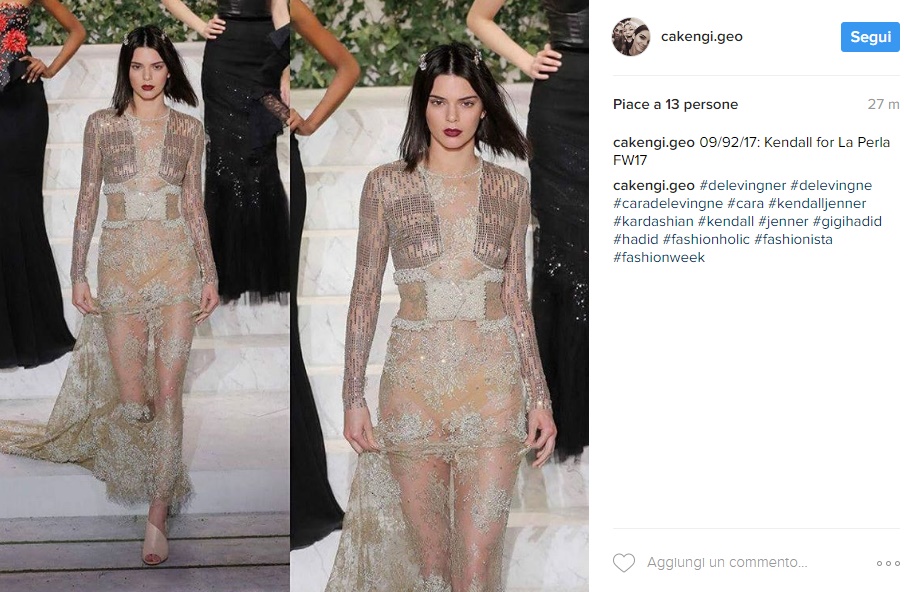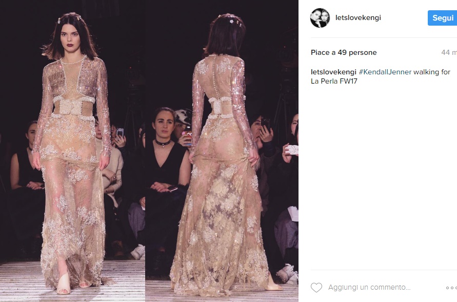NEW YORK – Kendall Jenner sensuale: abito trasparente vedo non vedo FOTO. Bellissima Kendall Jenner che, in occasione della sfilata di La Parla durante la New York Fashion Week, ha calcato la passerella con una meravigliosa creazione del raffinato marchio di lingerie con un abito vedo non vedo che ha catalizzato l’attenzione di pubblico e fotografi. Il vestito, in pizzo e color champagne, era impreziosito da una cascata di perline e decorazioni floreali. Un abito delicato e impalpabile assolutamente divino. Kendall Jenner ha sfilato insieme a modelle del calibro di Naomi Campbell e Stella Maxwell ma la sorellastra di Kim Kardashian ha letteralmente rubato la scena a tutte.
