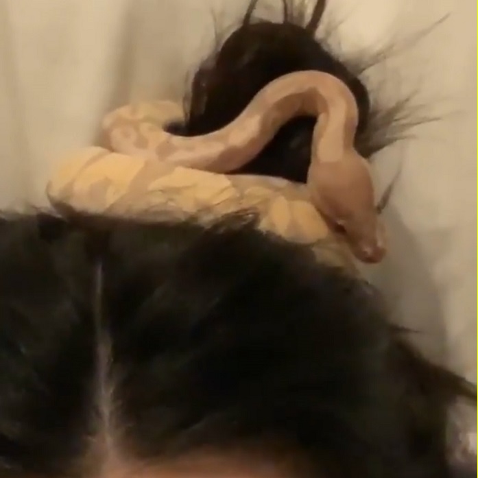 Chissà se il kingsnake albino ha già fatto amicizia anche con il fidanzato della 23enne, quel Ben Simmons con cui c’è stato, in questi ultimi tempi, un ritorno di fiamma.