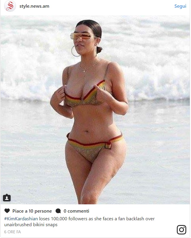 La scena è andata in onda nello show che l’ha resa famosa, “Al passo con i Kardashian”, trasmesso sul canale E!. La clip l’ha ripubblicata la sezione britannica del tabloid Metro: nella puntata si vedono le amiche e sorelle di Kim che le mostrano su un iPhone con le foto appena pubblicate, che porteranno oltre 100mila persone a smettere di seguirla. I fan hanno infatti protestato per un uso eccessivo di Photoshop. Ora, a mettere ulteriore carne al fuoco, ci pensa questo filmato.