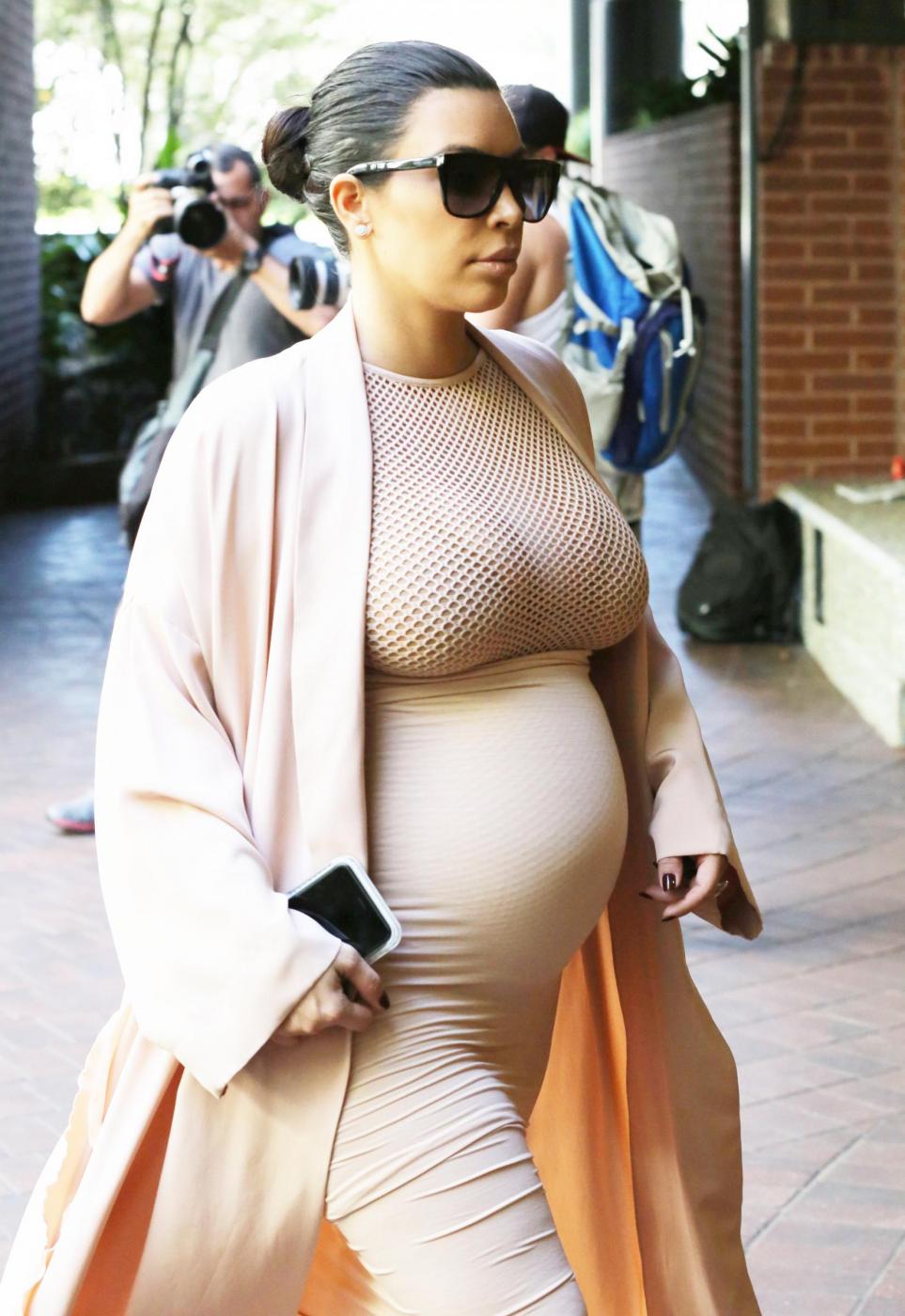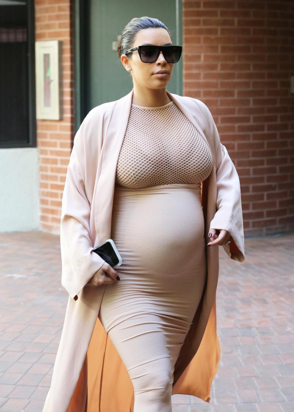 Kim Kardashian, abito color carne al sesto mese di gravidanza