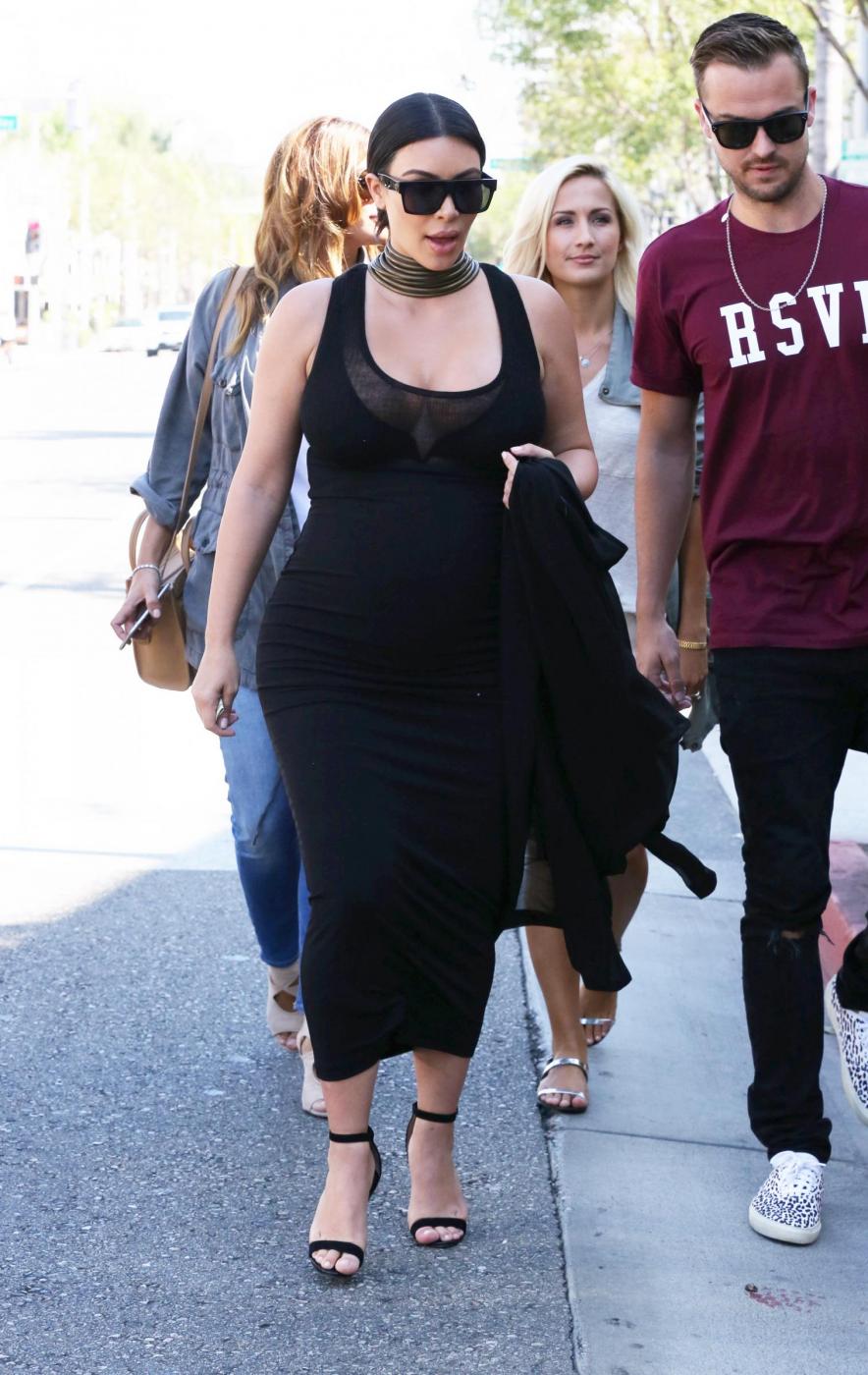 LOS ANGELES – Elegante anche per andare dal dottore. Kim Kardashian, con il pancione che cresce ogni giorno di più, indossa per far visita al medico un avvolgente vestito nero lungo fino alle caviglie, con soprabito, collarino e occhiali scuri.