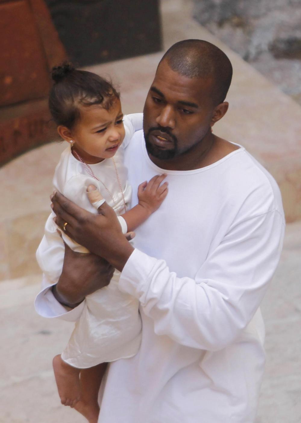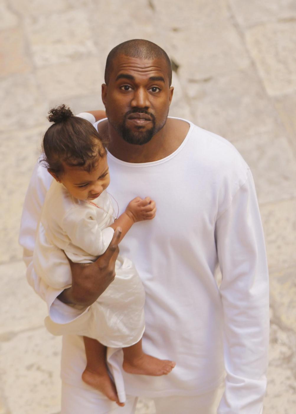 Tra i familiari presenti solo il papà, Kanye West, e la zia, Khloe. Per l’occasione Kim ha scelto un outfit piuttosto lontano dai suoi gusti abituali: una lunga gonna marrone abbinata a una maglia a manica lunga con lacci pendenti. Ai piedi sandali bassi. Abito rigorosamente bianco invece per la piccola North, così come per il rapper.