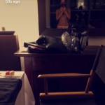 Kim usa le braccia per proteggere il suo seno e copre anche parte del viso con il telefonino. Nel condividere il video dice ai suoi fan: “Ho appena fatto uno spruzzo di mezzanotte. Abbronzatevi ragazzi!”. Prima dello “spruzzo”, Kim e il marito Kanye West erano stati a cena con Kourtney e Khloe. La famiglia Kardashian sta girando a Miami alcune puntate del reality a loro dedicato “Al passo con i Kardashian”.