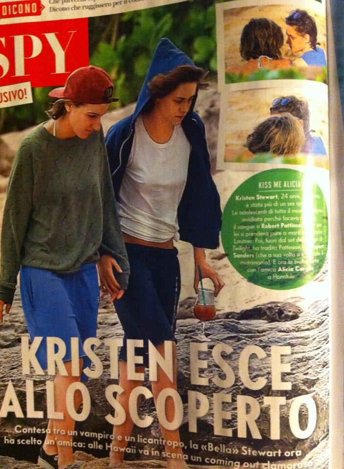 HONOLULU – Kristen Stewart ama una donna? In alcune foto pubblicate dal settimanale Vanity Fair Italia, l’attrice appare mano nella mano con l’amica Alicia Cargile mentre sono in vacanza alle Hawaii. In uno degli scatti pubblicati sembra proprio che le due ragazze si stiano baciando. Entrambe hanno un look ben poco femminile e piuttosto trascurato, forse al fine di passare inosservate. In passato Kristen è stata una delle donne più invidiate del pianeta perché faceva battere il cuore al collega Robert Pattinson, che tuttavia tradì con il regista Rupert Sanders. Quello dell’attrice è da considerarsi una specie di coming out? Al momento si tratta solo di una supposizione.