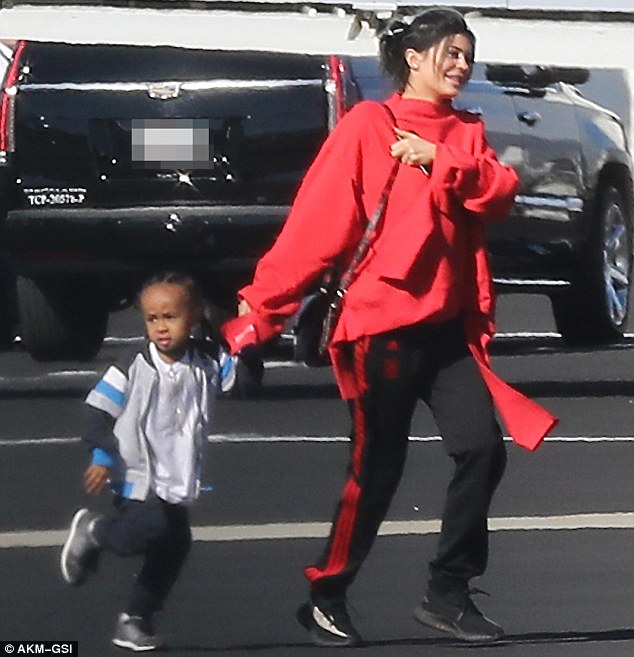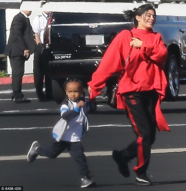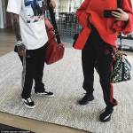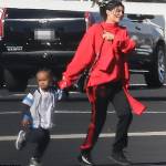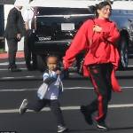 Nelle foto, la Jenner si sta per imbarcare sul volo privato che la porterà in Costa Rica e viene fotografata mentre corre tenendo per la mano King Cairo di 4 anni. Kylie ride e indossa una felpa sportiva rossa della Vetements da quasi 700 dollari abbinata a dei calzoni da tuta neri con le strisce rosse. Ai piedi la Jenner delle Adidas Calabasas.
