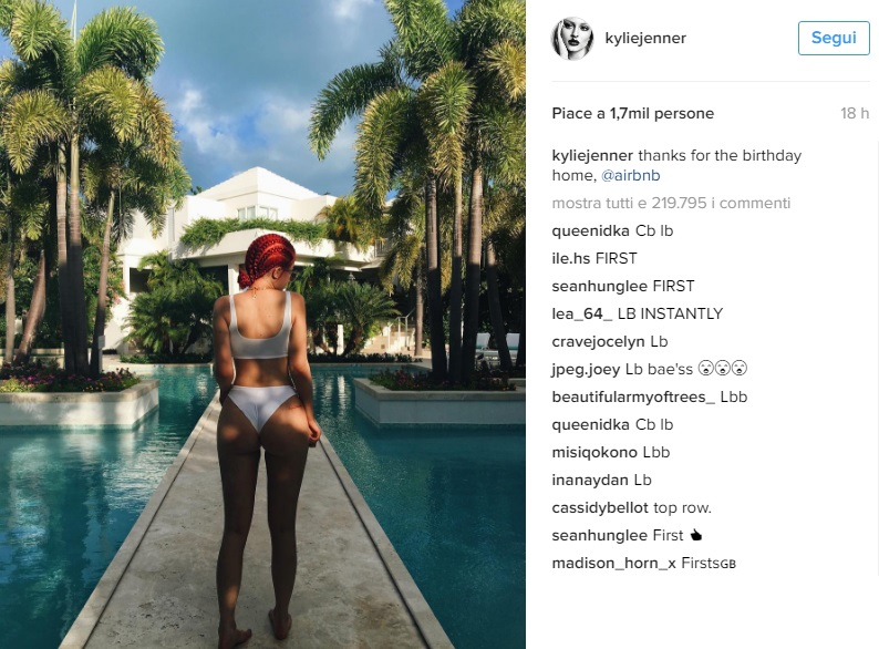 Il 10 agosto, Kylie ha compiuto 19 anni. Nonostante la sorellastra di Kim Kardashian abbia già festeggiato l’occasione con diversi party notturni, il giorno del suo compleanno ha voluto passarlo in spiaggia, alle Bahamas, insieme alle sue amiche più care e alla sorella Kendall. Ovviamente, Kylie ha voluto condividere con i suoi 70 milioni di follower la bella giornata al mare postando scatti a raffica. Kylie Jenner è apparsa a dir poco esplosiva in costume, un bikini color magenta arricchito di catenelle dorate. Che dire, la sorella di Kendall è davvero cambiata in questi ultimi anni e mostra un fisico esplosivo e curve da sballo che fanno impazzire i fan.