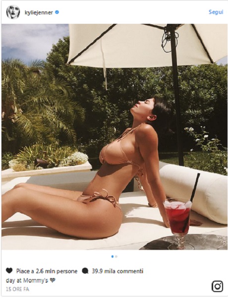 Kylie Jenner non ha ancora svelato come festeggerà questa data così importante. Intanto si concede qualche ora di sole tra le palme californiane della casa di sua madre. Seduta su un lettino imbottito, le foto sono accompagnate da una didascalia semplicissima: “Day at mommy’s“, ossia (“a casa di mamma”).